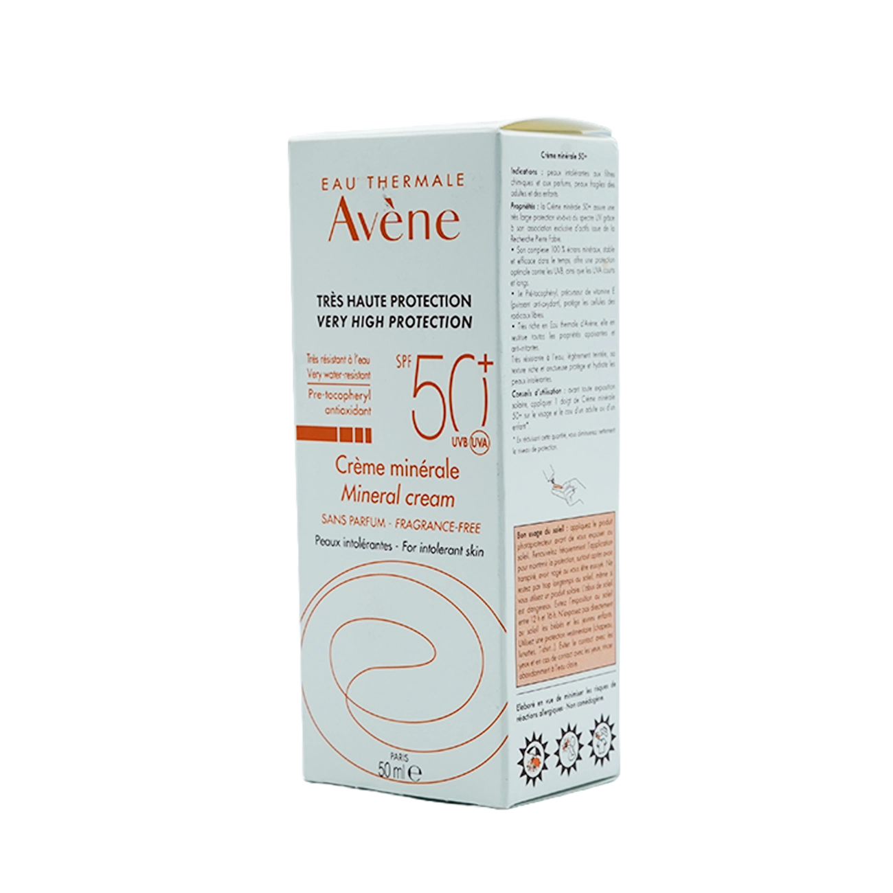 Avene SPF 50+ Mineral Cream (50ml) offers high sun protection with a mineral-based formula, providing gentle, effective defense against UV rays for sensitive skin.